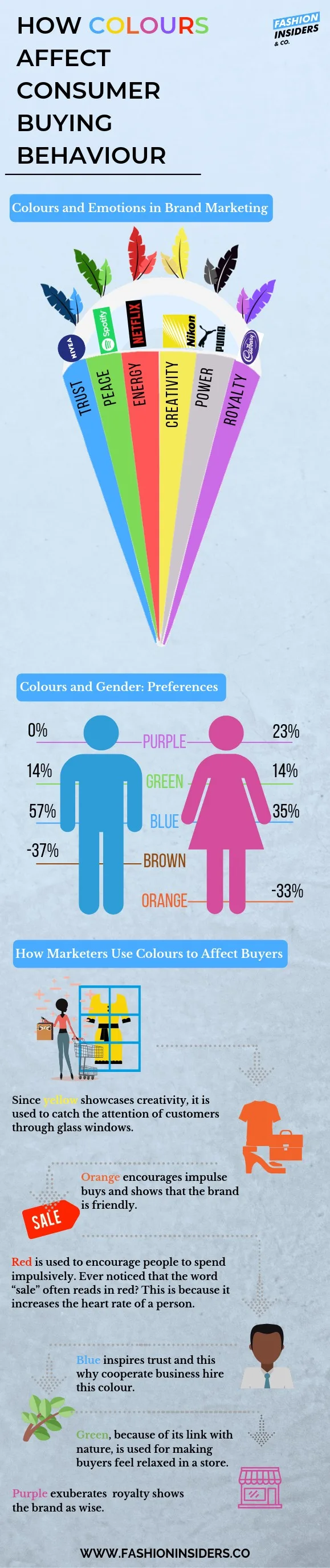 Using such information that details how customers’ emotion is affected by colours, marketers influence their buying decisions.